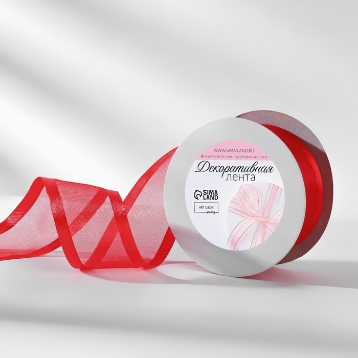 Лента декоративная, капроновая/атласная, 40 мм, 18 ± 1 м, цвет красный