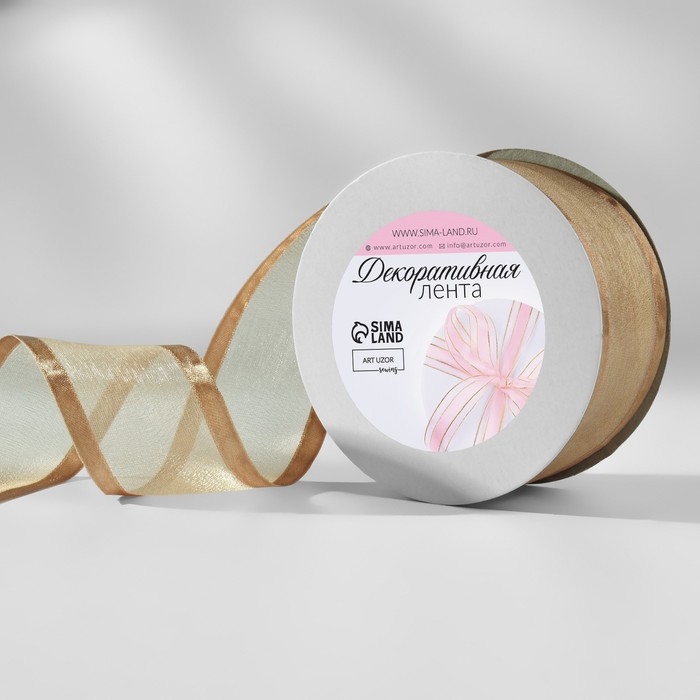Лента декоративная, капроновая/атласная, 40 мм, 18 ± 1 м, цвет бежевый