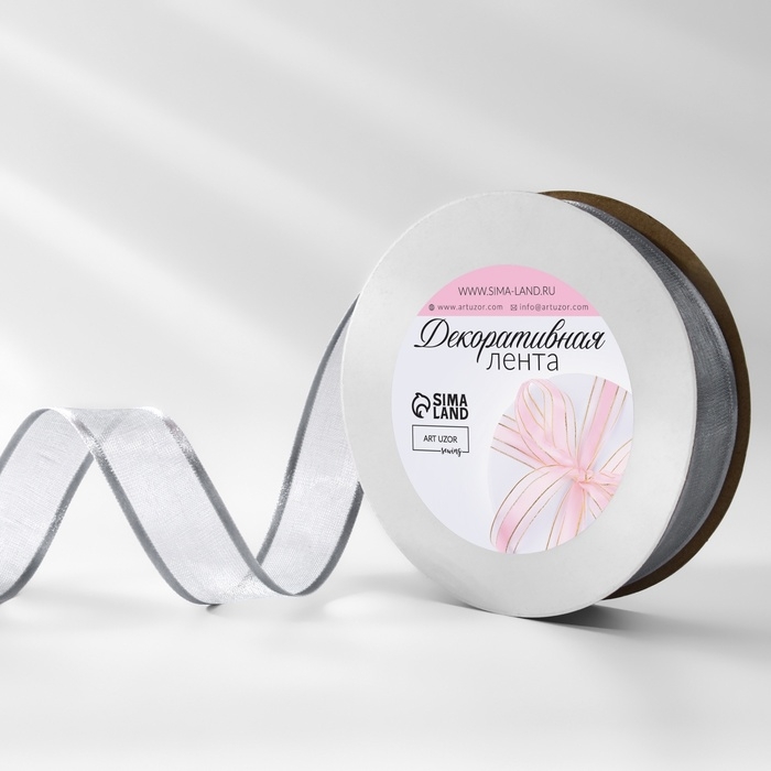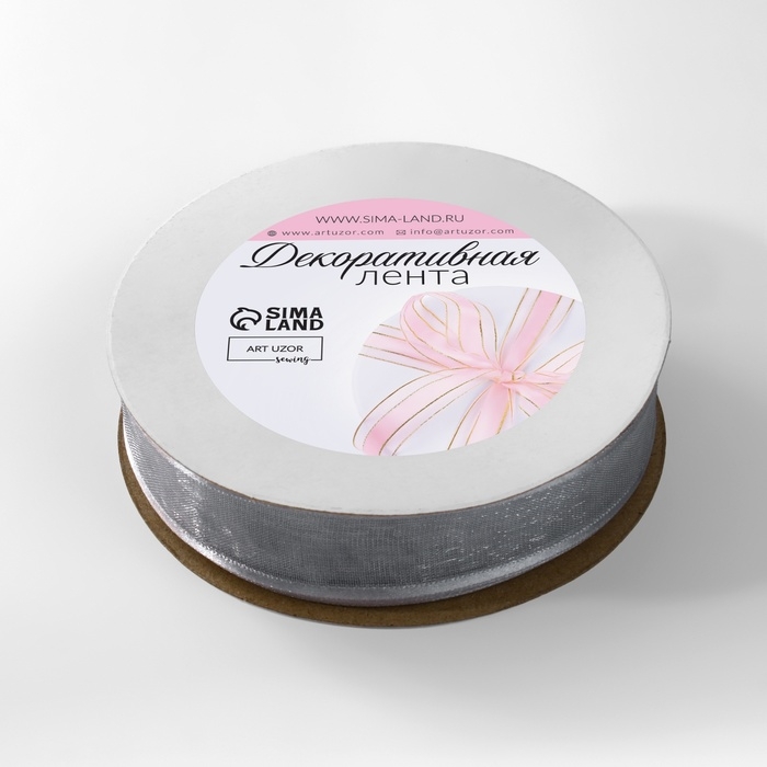 Лента декоративная, капроновая/атласная, 20 мм, 18 ± 1 м, цвет серебряный