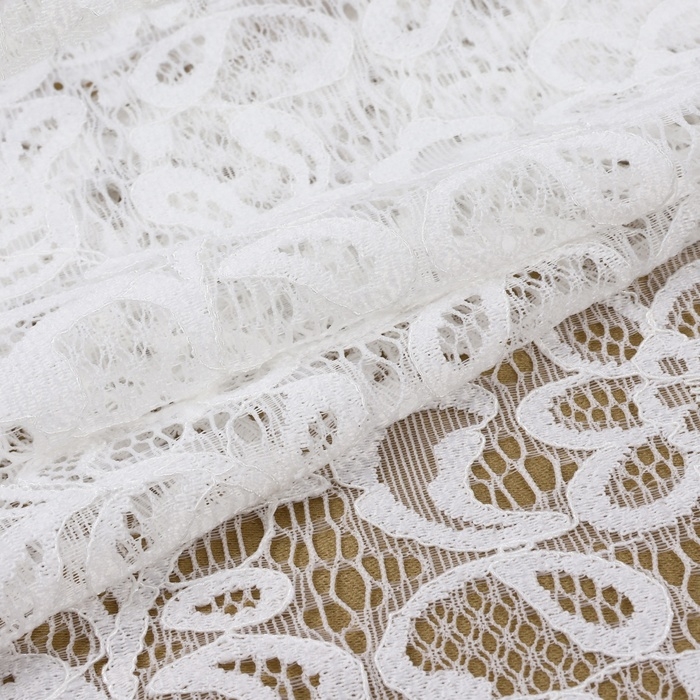 Эластичное кружевное полотно не имеет тканной основы. Благодаря своей пластичности кружево тянется, а переплетения нитей формируют воздушную выразительность.