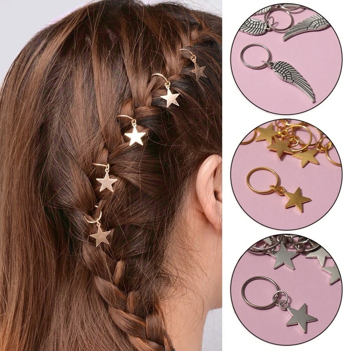 Кольца станут стильным украшением причёски. Изделия прочно держатся в косичках, не утяжеляют и не травмируют волосы. Вы можете добавлять украшения во время создания причёски или после. Раздвигайте и соединяйте края колечек параллельно друг другу, чтобы изделия прослужили вам как можно дольше. Украшения легко снимаются и надеваются, поэтому вам не составит труда в любой момент сменить образ. Аксессуары подойдут для волос любой длины.