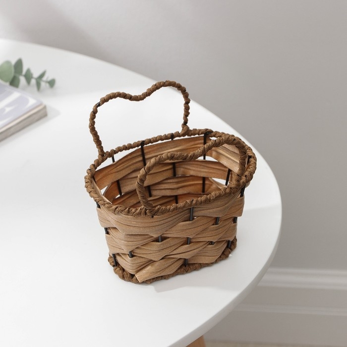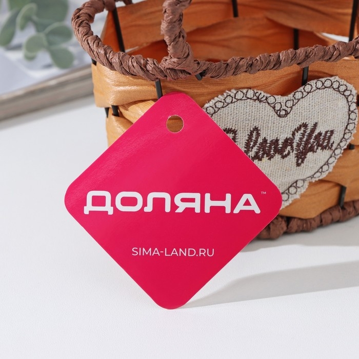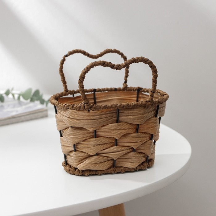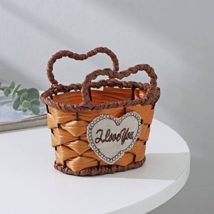 Кашпо для цветов плетёное с ручками Доляна «Сердце», 13,5×10×12,5 см, цвет светло-коричневый