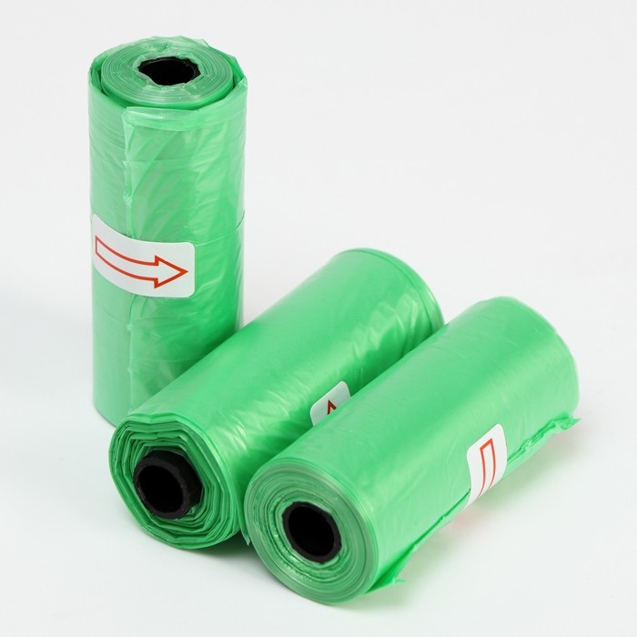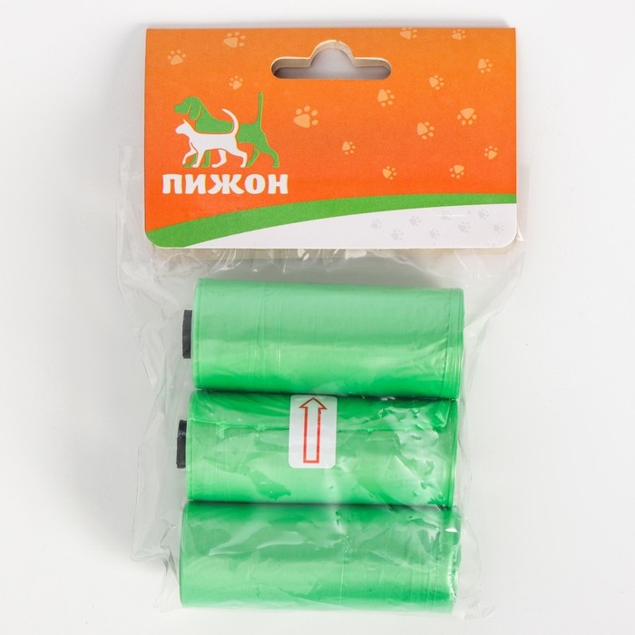 Пакеты для уборки за собаками однотонные (3 рулона по 15 пакетов 29х21 см), зелёные