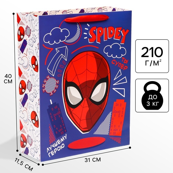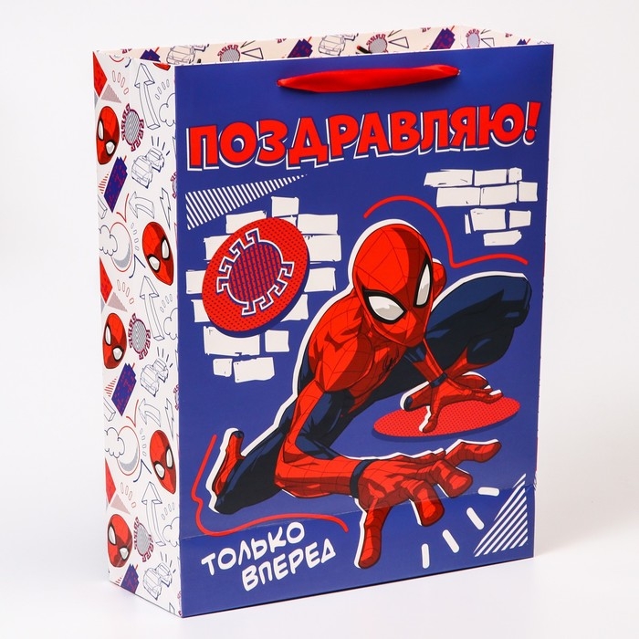 Пакет подарочный "Поздравляю" 40х31х11.5 см, упаковка, Человек-паук