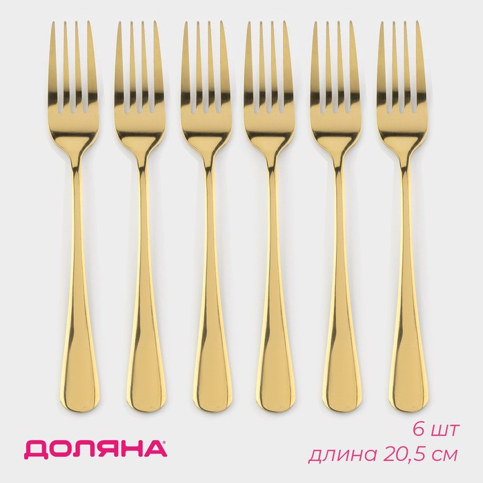 Набор вилок столовых из нержавеющей стали Доляна «Голд», h=20,5 см, 6 шт, цвет золотой