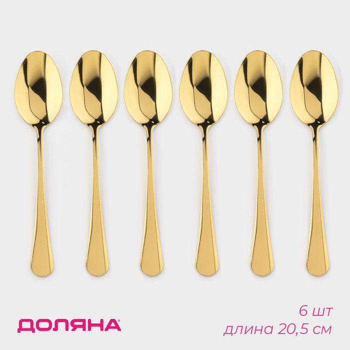 Ложки столовые из нержавеющей стали Доляна «Голд», длина 20,5 см, 6 шт, цвет золотой