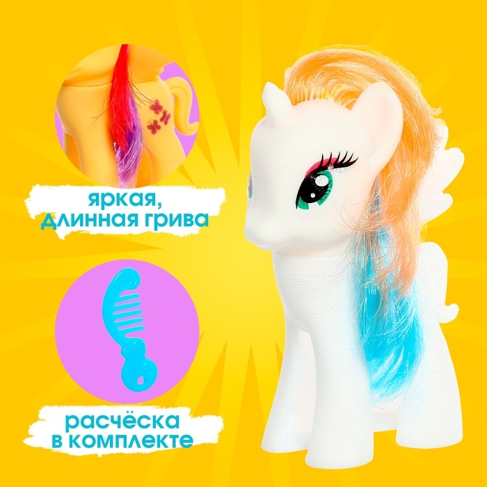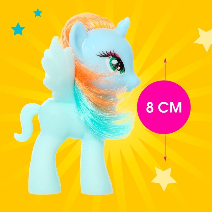 - Высота пони — 8 см. Игрушка очень компактная, поэтому её удобно захватить с собой на прогулку, в гости и даже в путешествие!