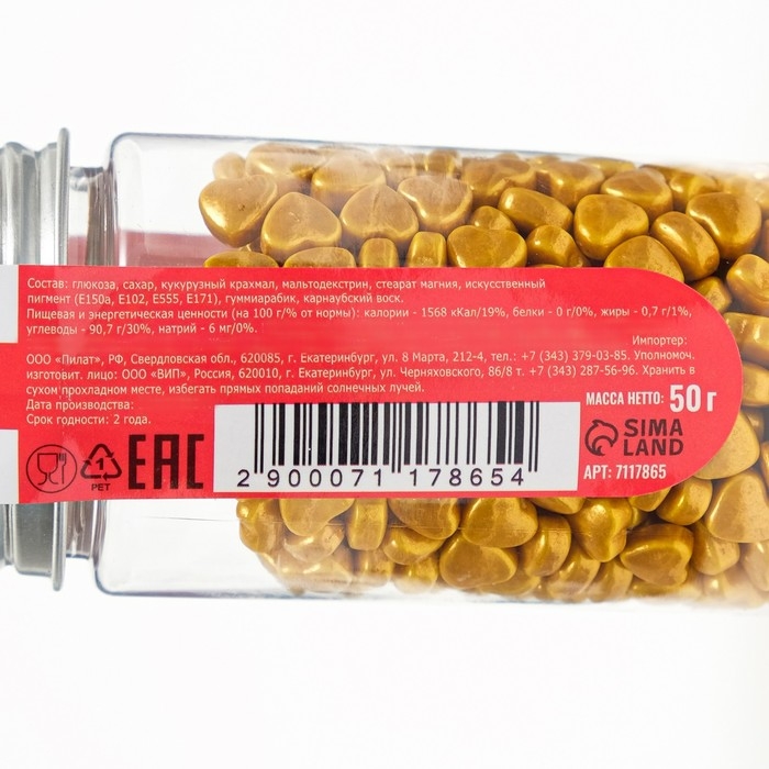 Посыпка кондитерская с мягким центром "Блеск", серебро, 1.5 кг