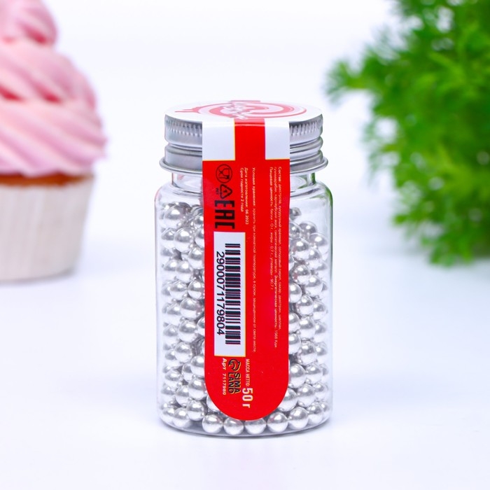 Посыпка кондитерская с мягким центром "Блеск", серебро, 1.5 кг
