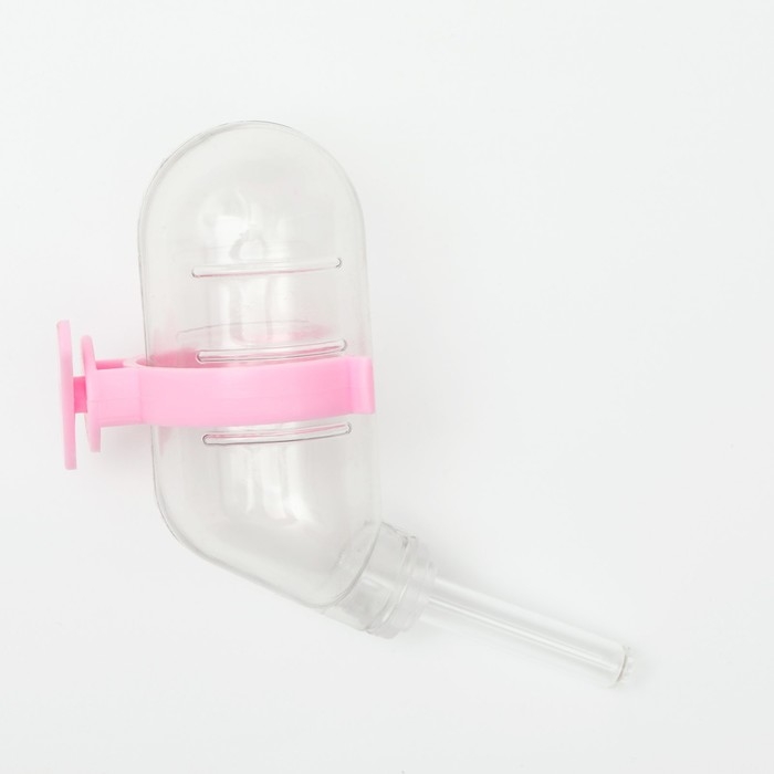 Поилка для грызунов, 60 мл, прозрачная с розовым креплением