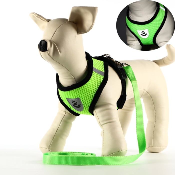 Комплект амуниции со светоотражающей нашивкой, S, ОШ 24 см, ОГ 28-33 см, зелёный