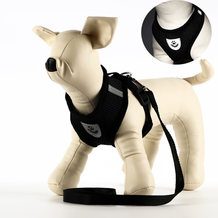 Комплект мягкая шлейка, поводок 120 х 1 см с вертлюгом, S, ОШ 26-67 см, ОГ 26-67 см,чёрный