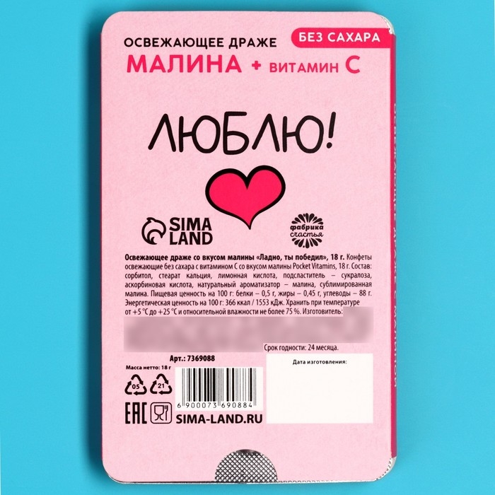 Драже освежающее «Ладно, ты победил» с малиной, 18 г.