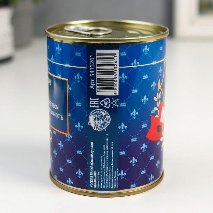Носки в банке "Самый лучший начальник" (внутри носки мужские, цвет чёрный)