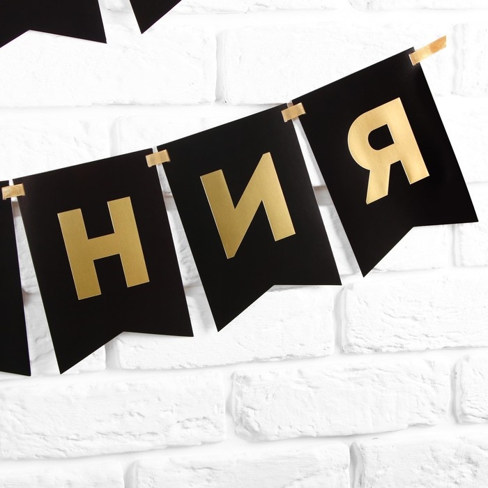 Гирлянда тиснение на бумаге «С Днем Рождения», черная, золотые буквы, дл. 156 см., 250 гр/кв.м