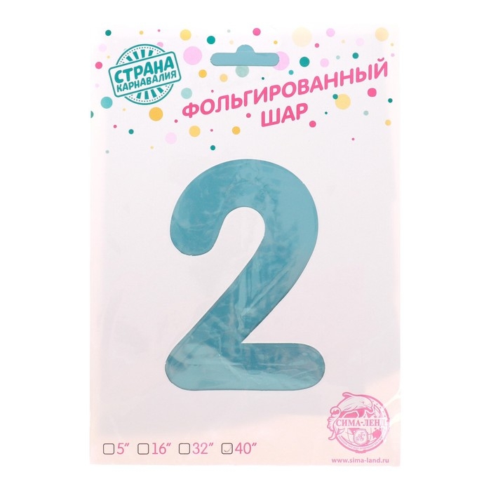 Шар фольгированный 40" «Цифра 2», нежно-голубой