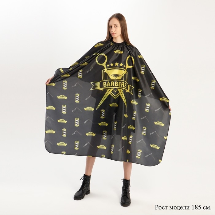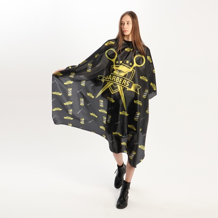 Пеньюар парикмахерский, с крючком, цвет чёрный/жёлтый