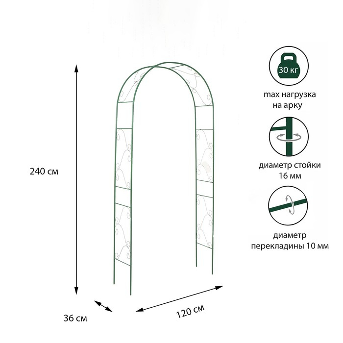 Арка садовая, разборная, 240 × 120 × 36 см, металл, зелёная, «Вьюнок»