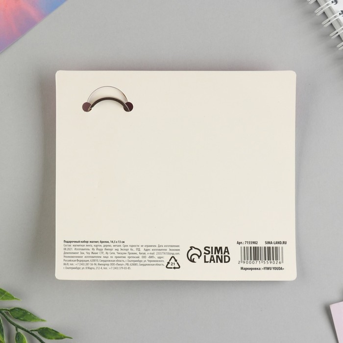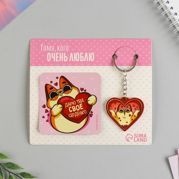 Брелок для ключей и магнит «Тому, кого люблю», (котейка) подарочный набор, 14,5 х 12 см.
