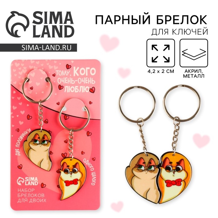 Брелок для ключей парный «Тому кого очень очень люблю», акриловый, 13,3 х 8