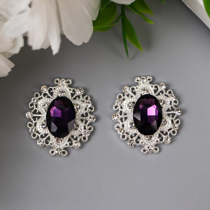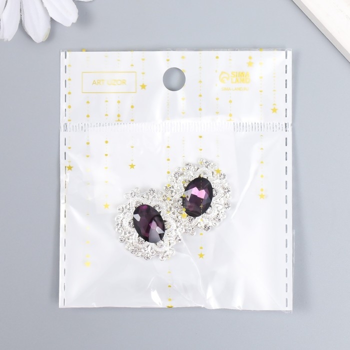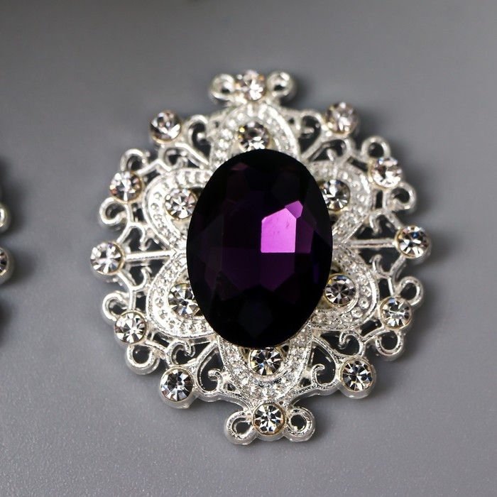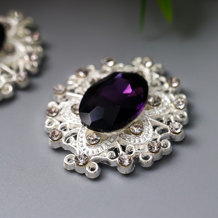 Декор для творчества металл "Медальон узорный" тёмно-фиолетовый кристалл 2,6х2,4 см