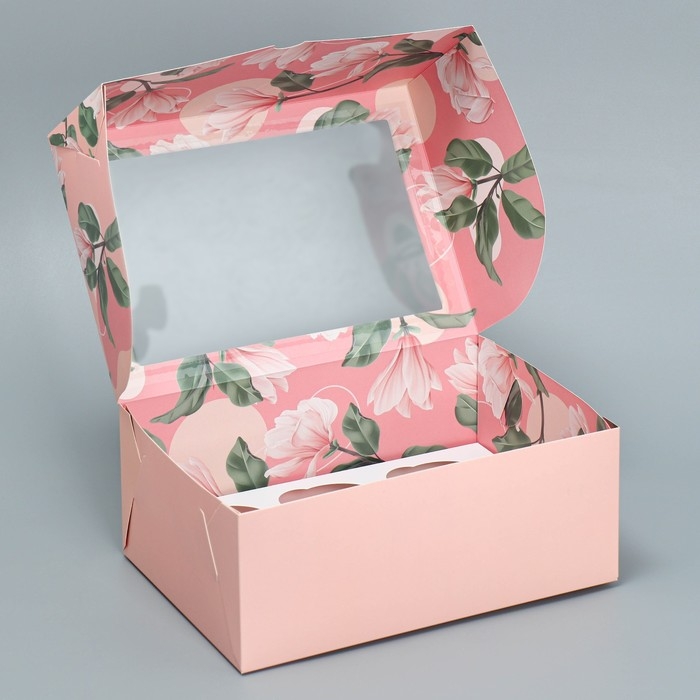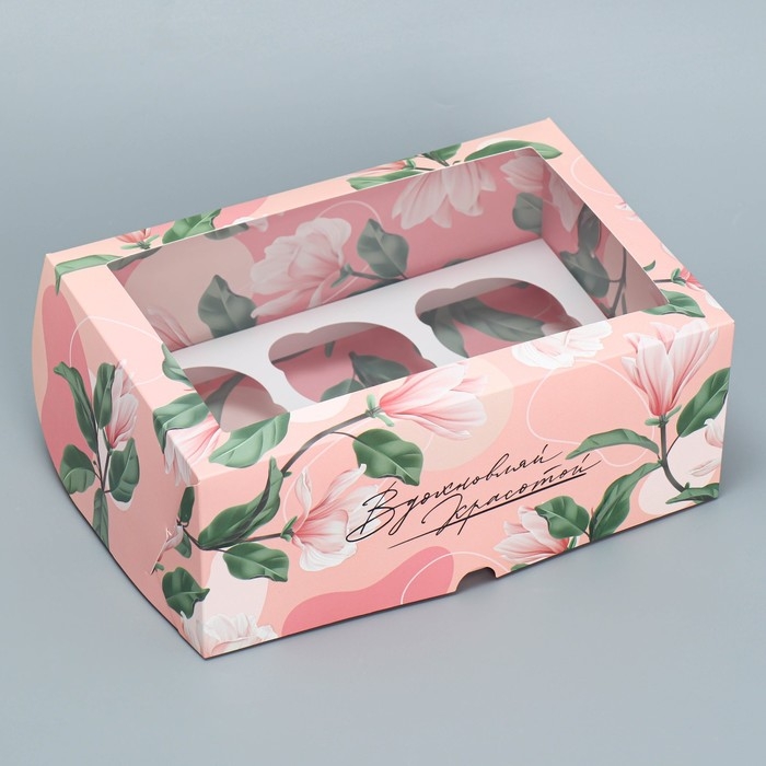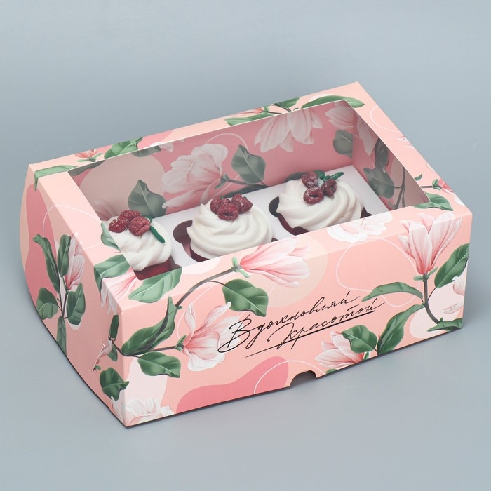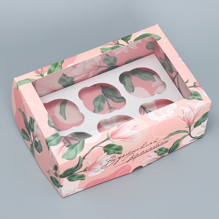 Коробка для капкейков, кондитерская упаковка двухсторонняя, 6 ячеек «Вдохновляй красотой», 25 х 17 х 10 см