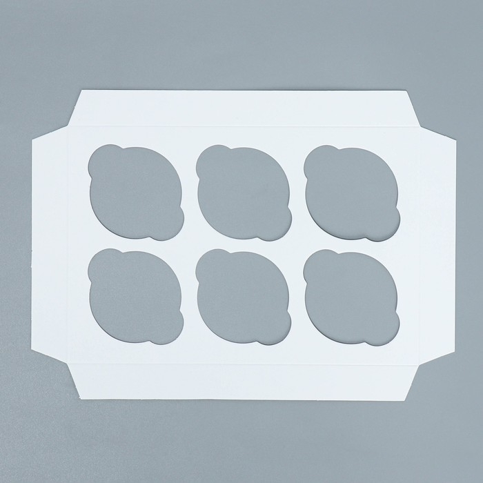 Коробка на 6 капкейков с окном, белая, 25 х 17 х 10 см