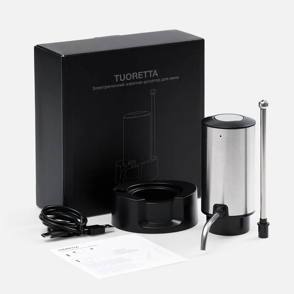 Электрический аэратор-дозатор — это изящное и функциональное устройство, которое станет незаменимым помощником для истинных ценителей вина. Tuoretta позволяет с легкостью наливать напиток в бокал, одновременно насыщая его кислородом. Этот процесс, известный как аэрация, раскрывает глубину и многогранность вкуса вина, а также усиливает ароматические ноты словно освежая напиток.