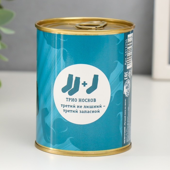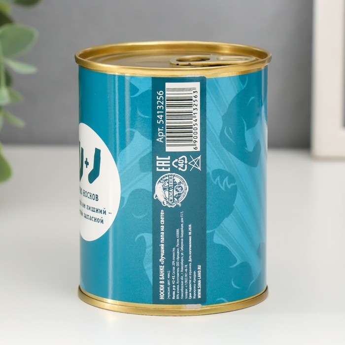 Носки в банке "Лучший папа на свете" (внутри носки мужские, цвет чёрный)