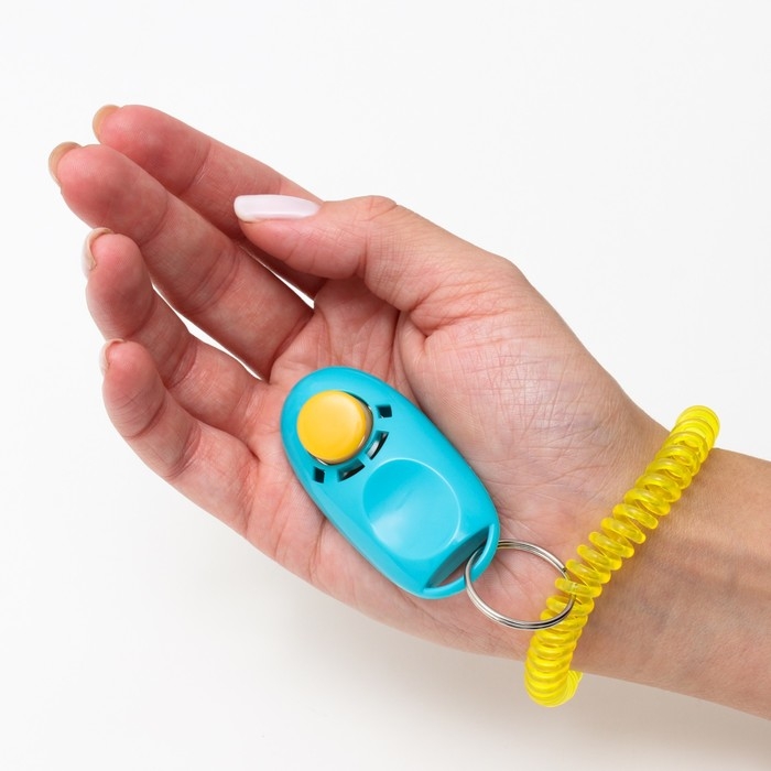 Кликер для дрессировки собак с браслетом на руку, голубой