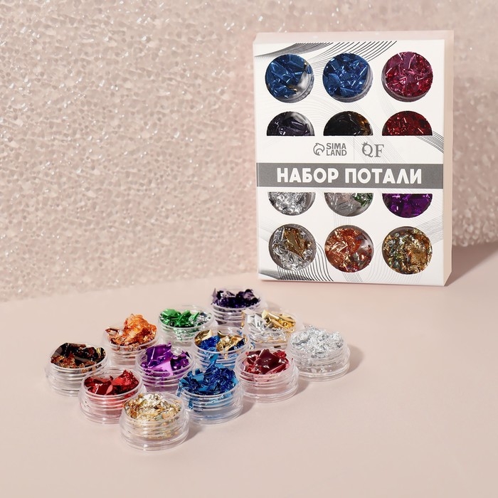 Создайте неповторимый образ с помощью набора потали «Ассорти», состоящего из 12 разноцветных оттенков. Этот набор — идеальное решение для тех, кто стремится выделиться ярким маникюром и придать ногтям эффектный блеск и текстуру без использования блёсток. Поталь можно использовать как для акцентного дизайна, так и для полного покрытия ногтевой пластины, открывая безграничные возможности для вашего творчества.