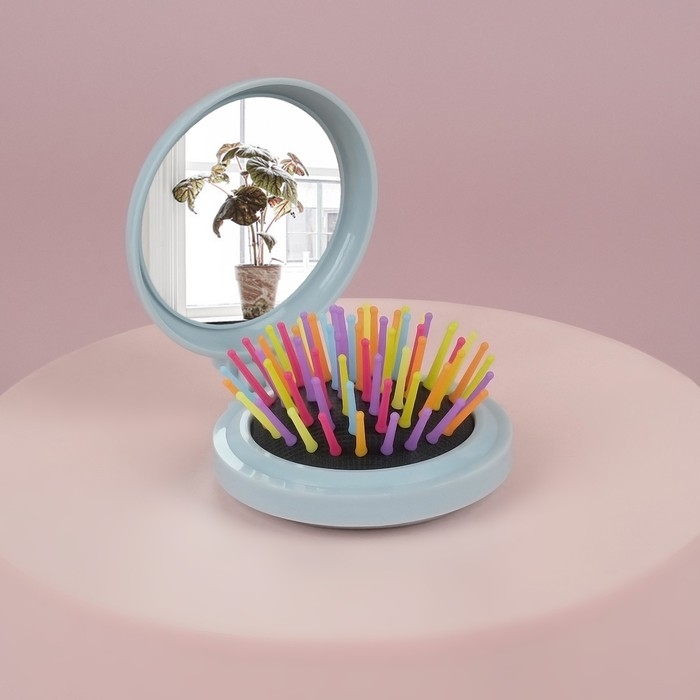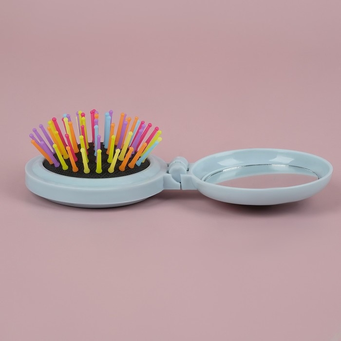 Расчёска массажная, складная, с зеркалом, d = 6 см, цвет МИКС