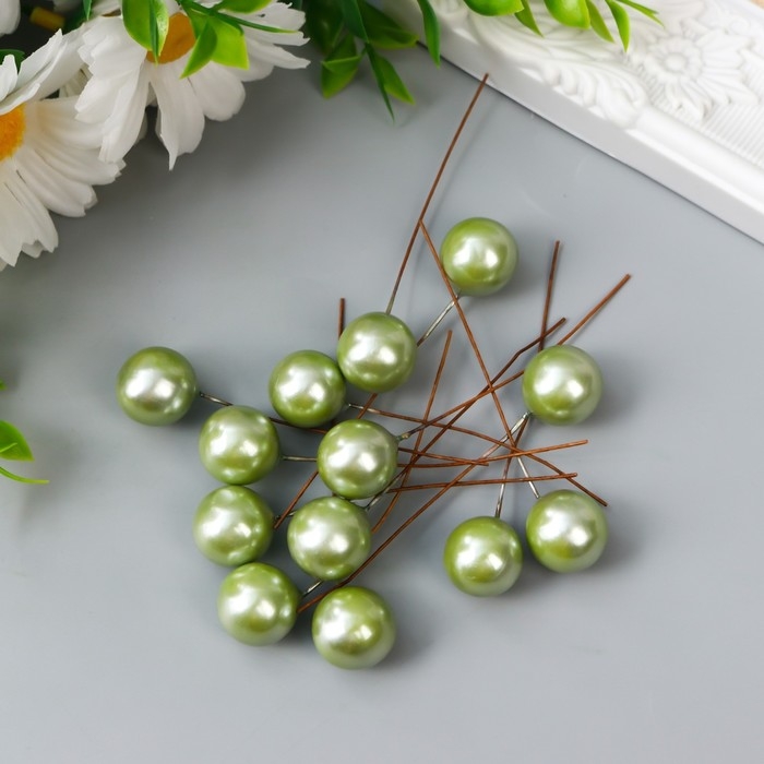 Декор для творчества "Шарик светло-зелёный жемчужный" d=1,5 см набор 20 шт 6х1,5х1,5 см