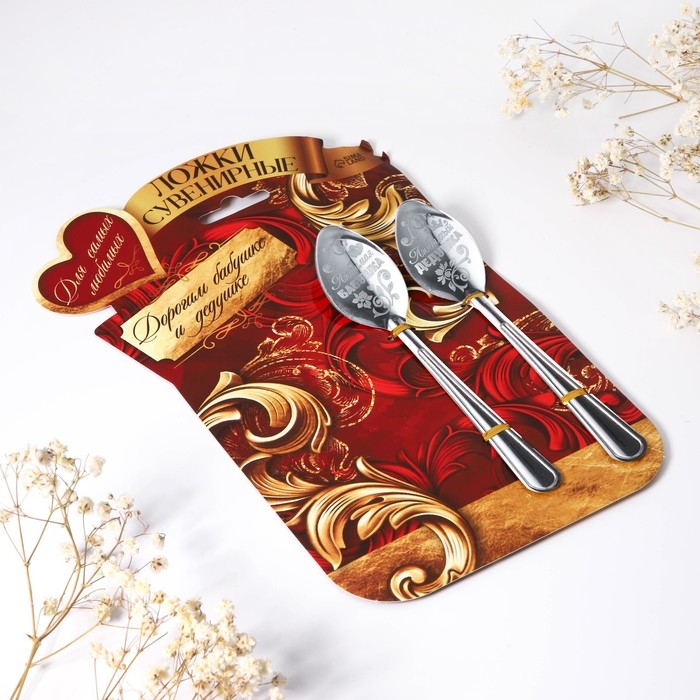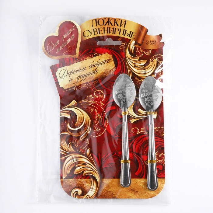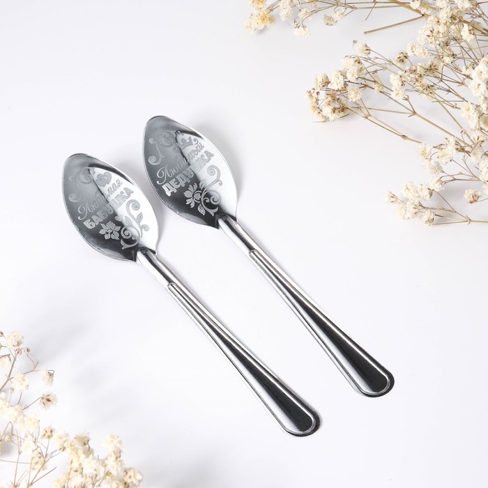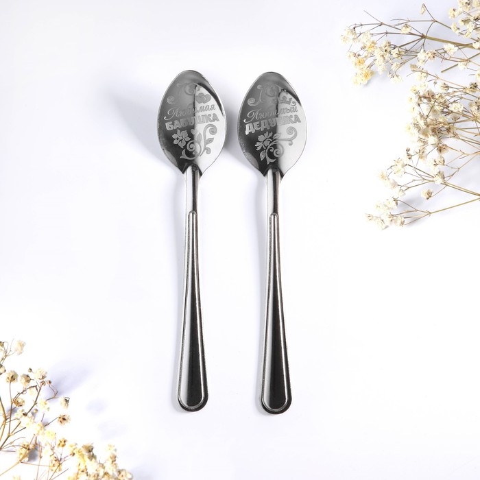 Ложки с гравировкой, набор 2 шт «Бабушке и дедушке», 15,5 х 25,5 см.