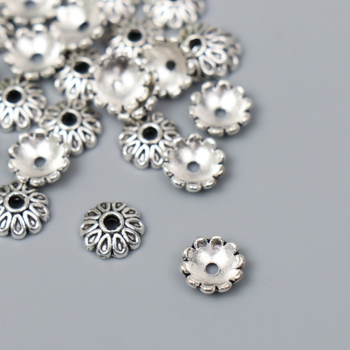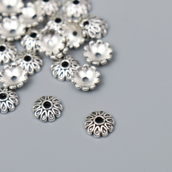 Декор шляпка для бусин металл "Цветок из капель" серебро G030B892 набор 30 шт 0,8х0,8 см