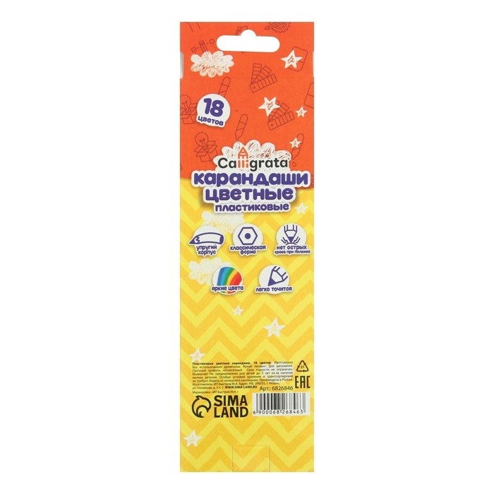 Карандаши 18 цветов Calligrata, ЭКОНОМ, заточенные, шестигранные, пластиковые, картонная упаковка, европодвес