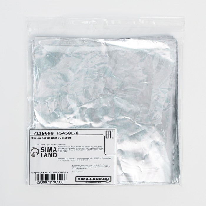 Фольга для конфет 10*10см 100шт., серебро