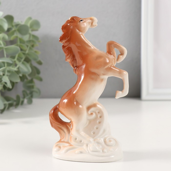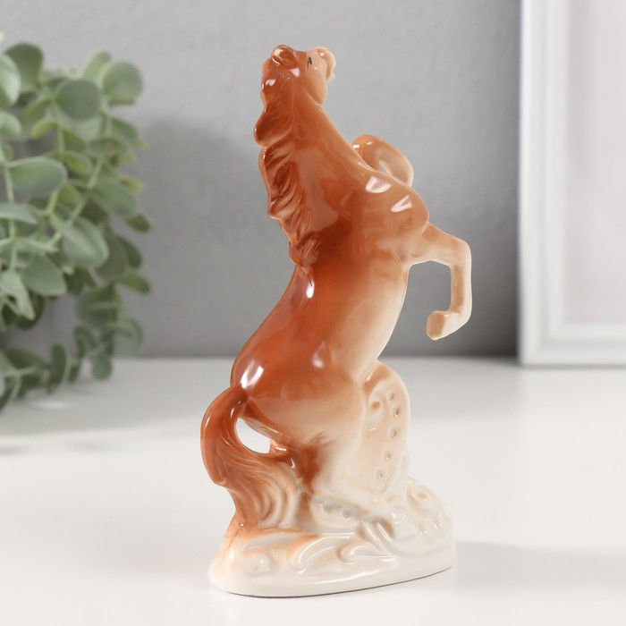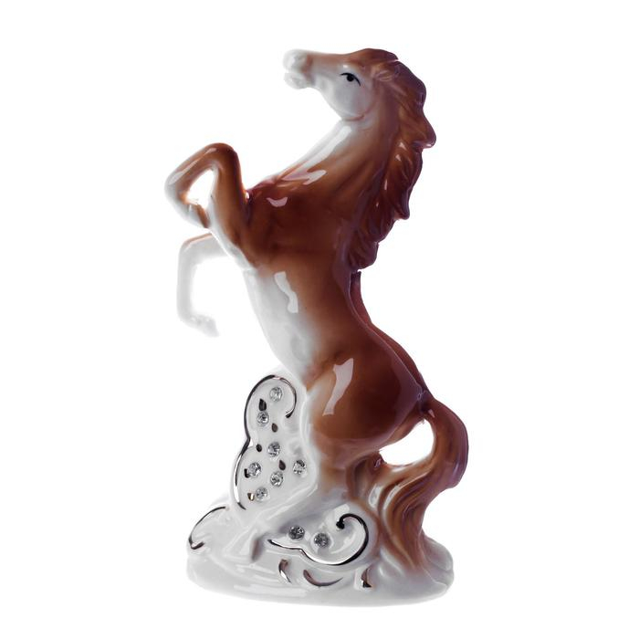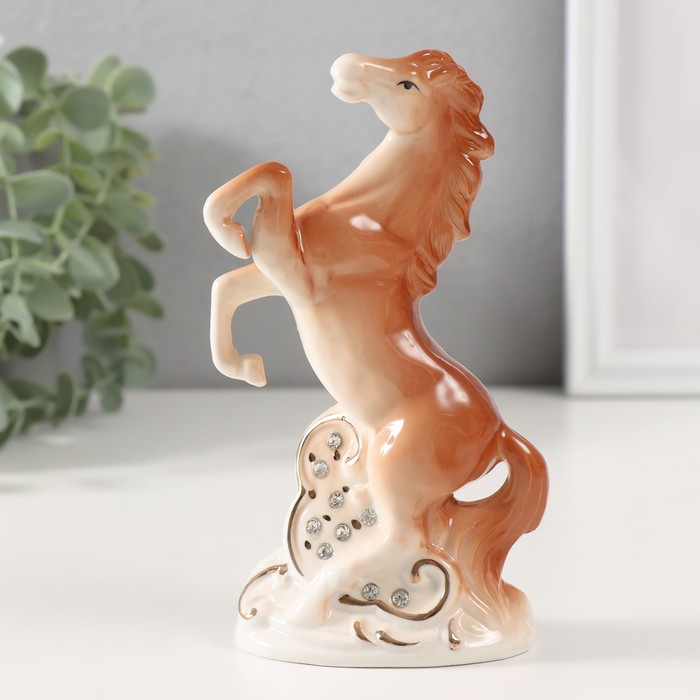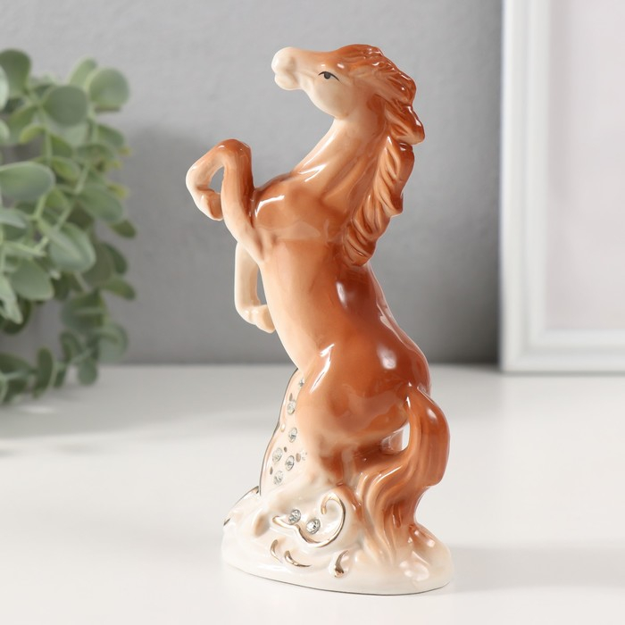 Сувенир керамика "Конь на дыбах" коричневый с золотом, стразы 16х9х4,8 см
