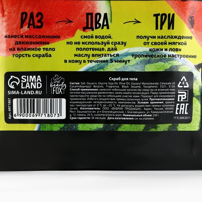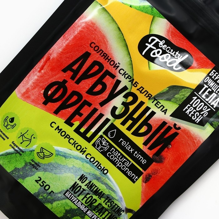 Скраб для тела соляной, 250 г, аромат арбуза, BEAUTY FOOD