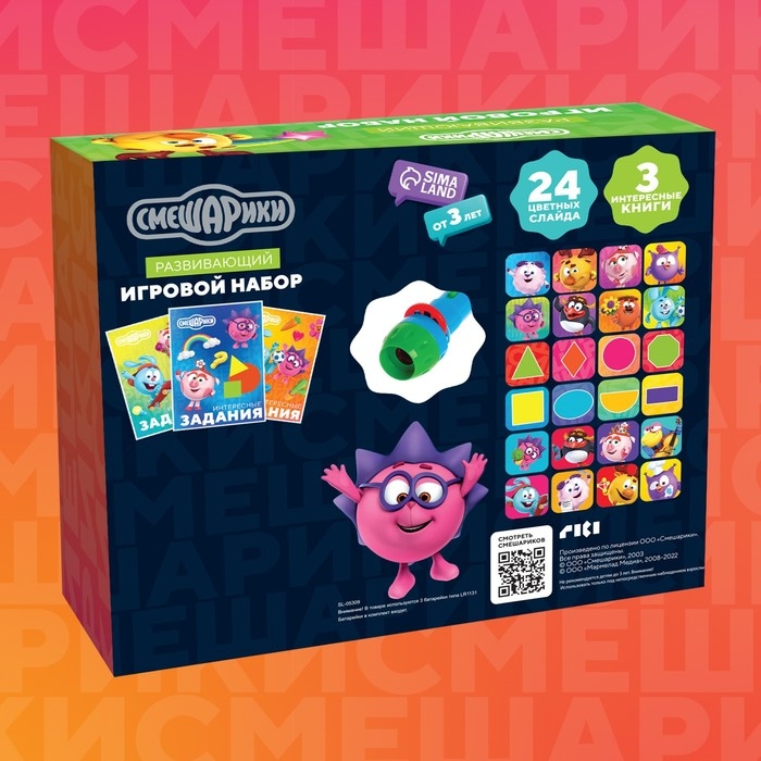 Игровой набор с проектором «Смешарики», 3 книжки, свет