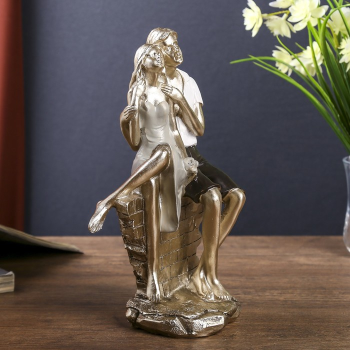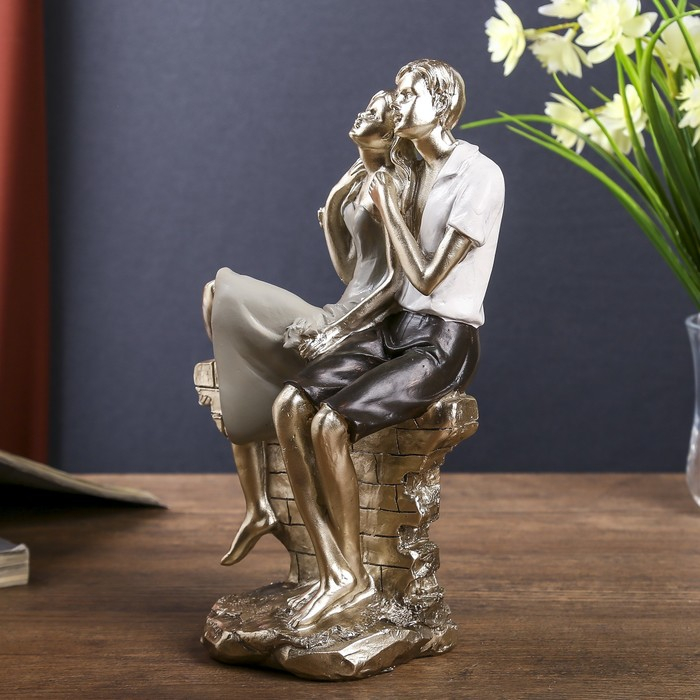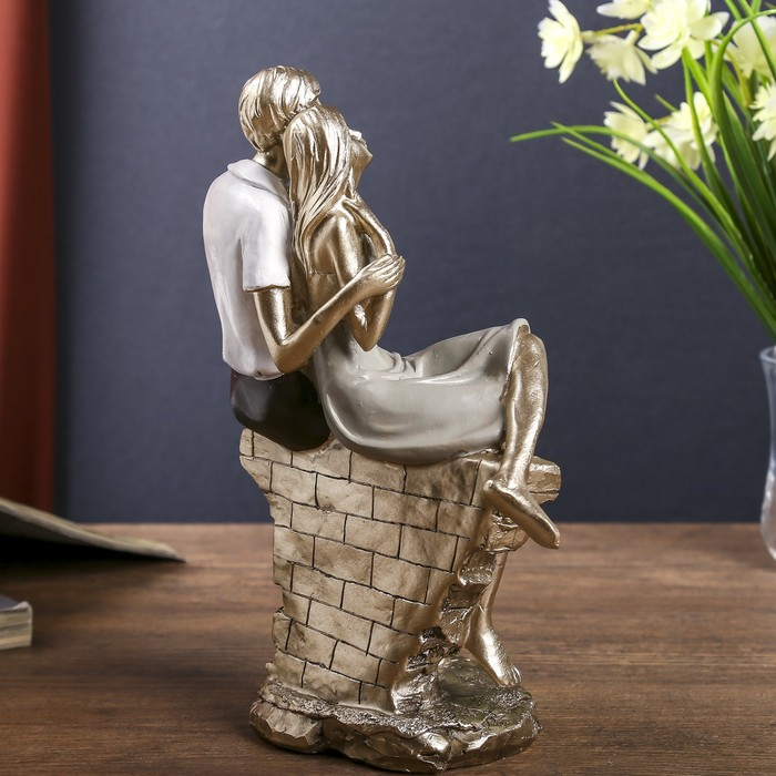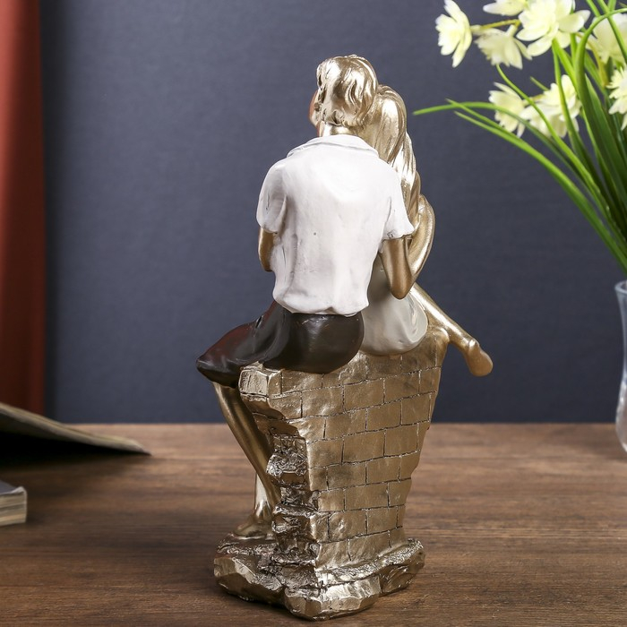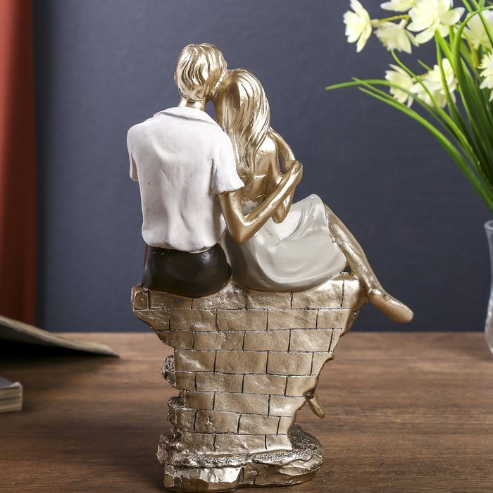 Сувенир полистоун "Влюблённая пара на кирпичной изгороди" 22х14,5х8 см