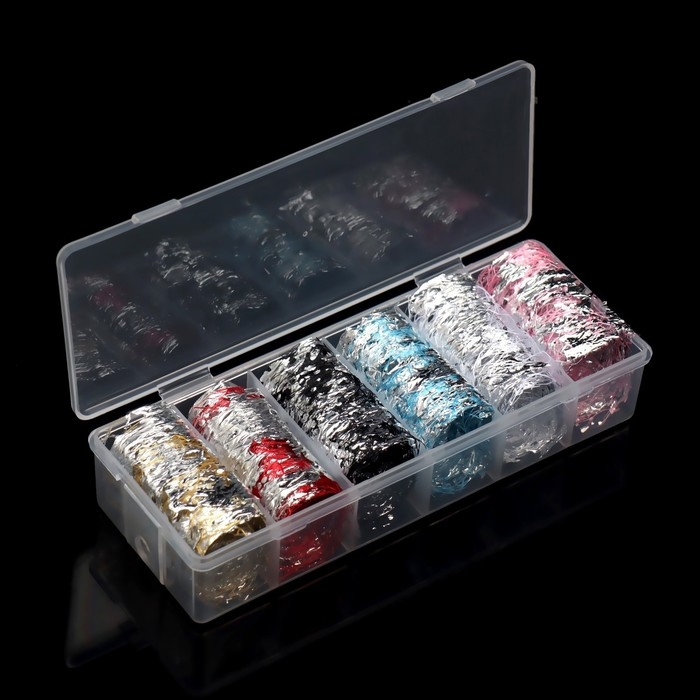 Набор фольги для ногтей «Битое стекло», 2,5 × 50 см, 10 шт, в пластиковом органайзере
