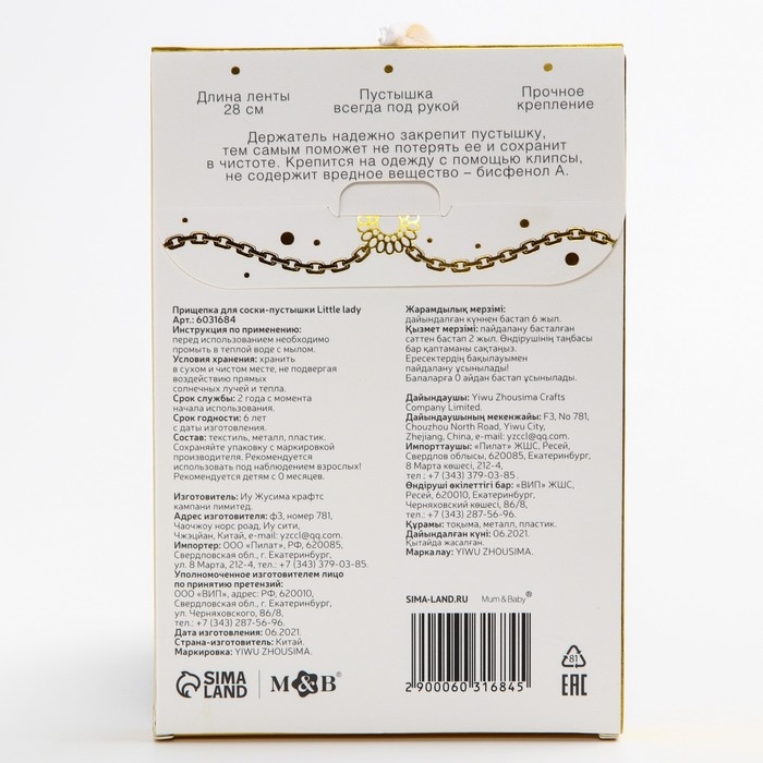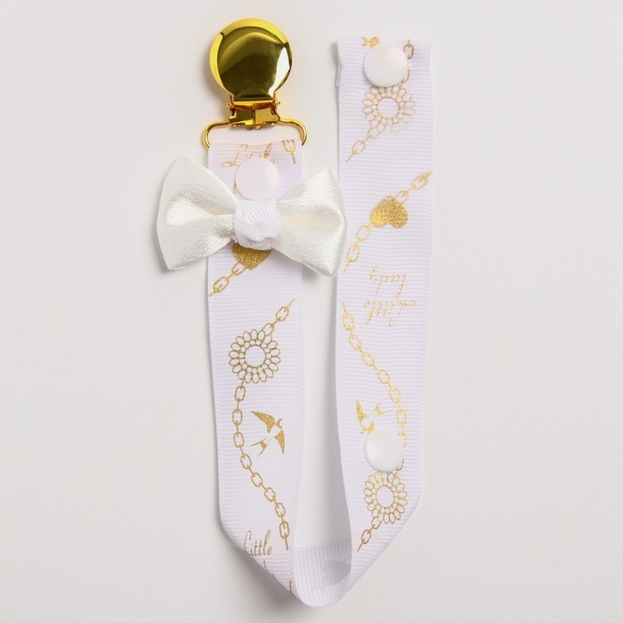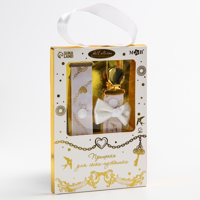 Прищепка для пустышки предотвратит потерю маленького предмета. Используйте специальный держатель, и соска всегда будет под рукой!Изделие фиксируется на одежде ребёнка. На конце цепочки есть карабин, который зацепляется за кольцо пустышки. Надёжное крепление убережёт вещь от падения на пол, если малютка случайно выронит её изо рта.С держателем можно играть, притягательный дизайн точно понравится малышу.Товар изготовлен из качественного нетоксичного материала. Подходит для деток с рождения.