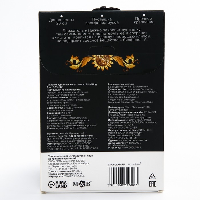 Держатель для соски - пустышки «Little King», на ленте