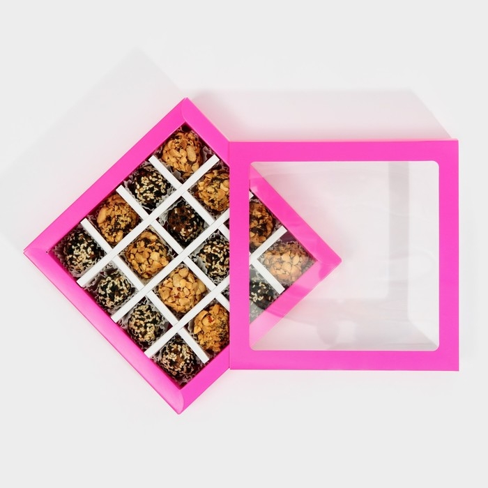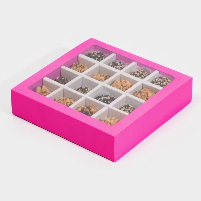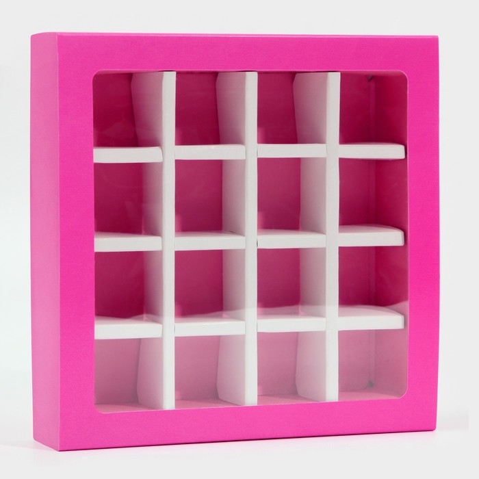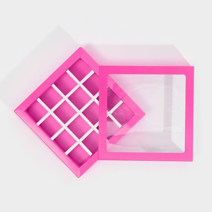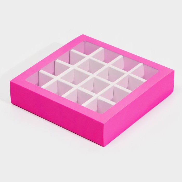 Коробка для конфет, кондитерская упаковка, 16 ячеек, «Фуксия» 17.7 х 17.7 х 3.8 см