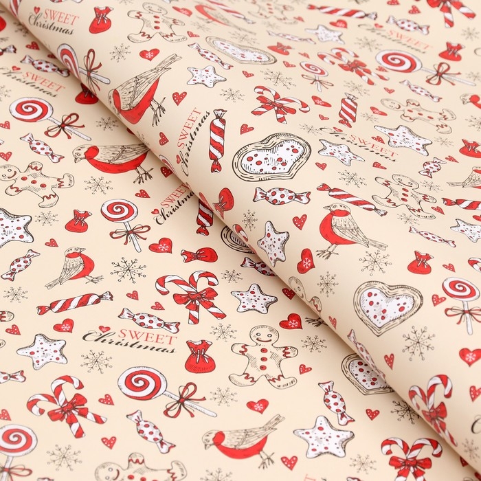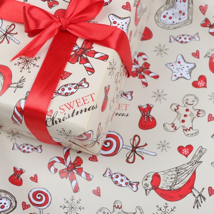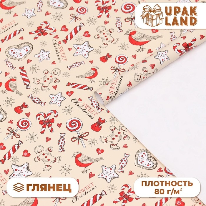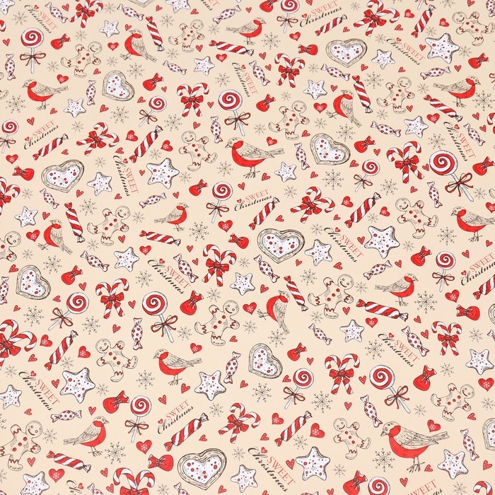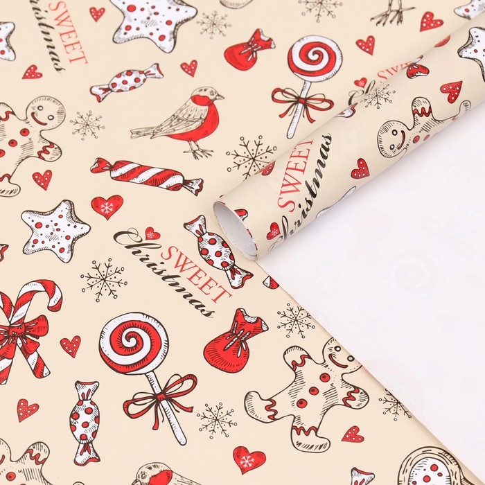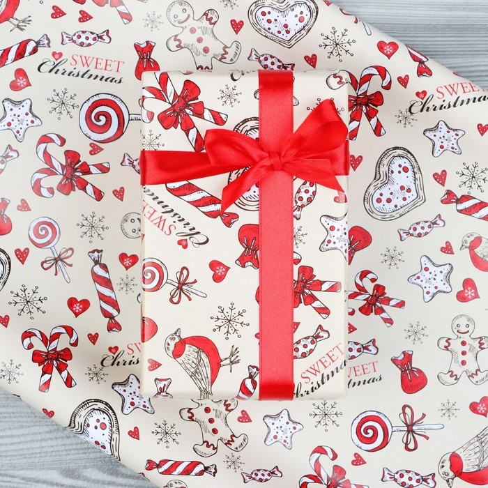 Новый год. Бумага упаковочная глянцевая "Рождественская конфета", 70 х 100 см, 1 лист