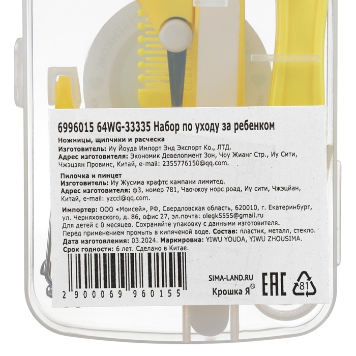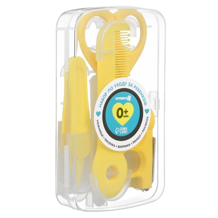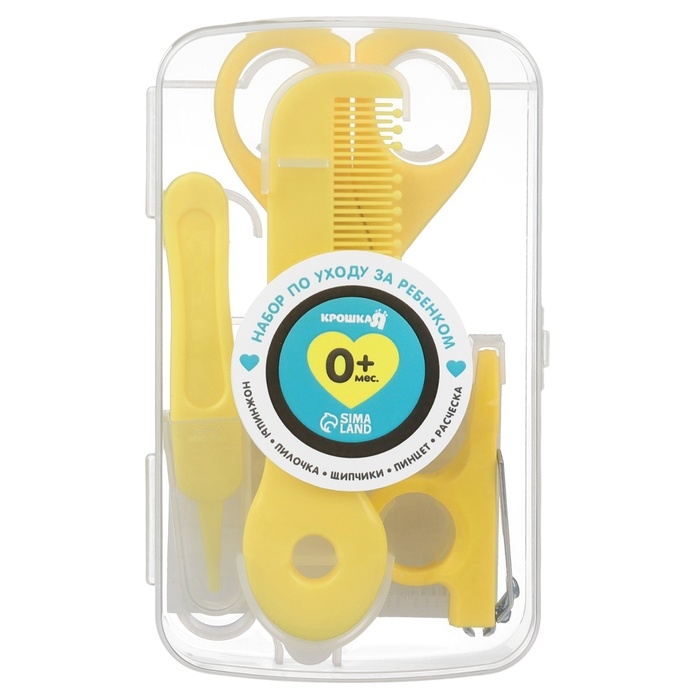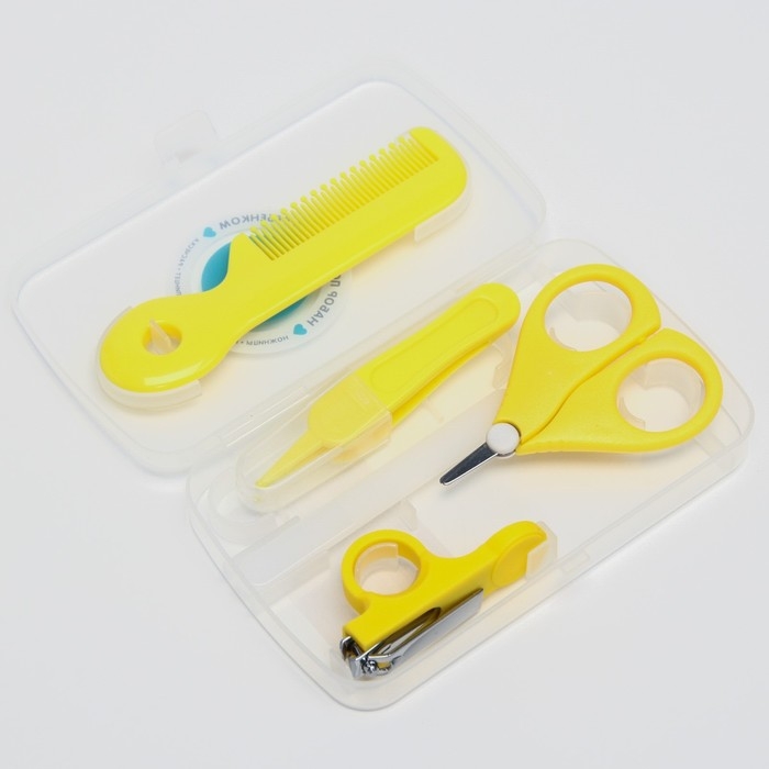 Набор по уходу за ребенком, 5 предметов (расческа, пинцет, ножницы, книпсер, пилка), цвет желтый 6