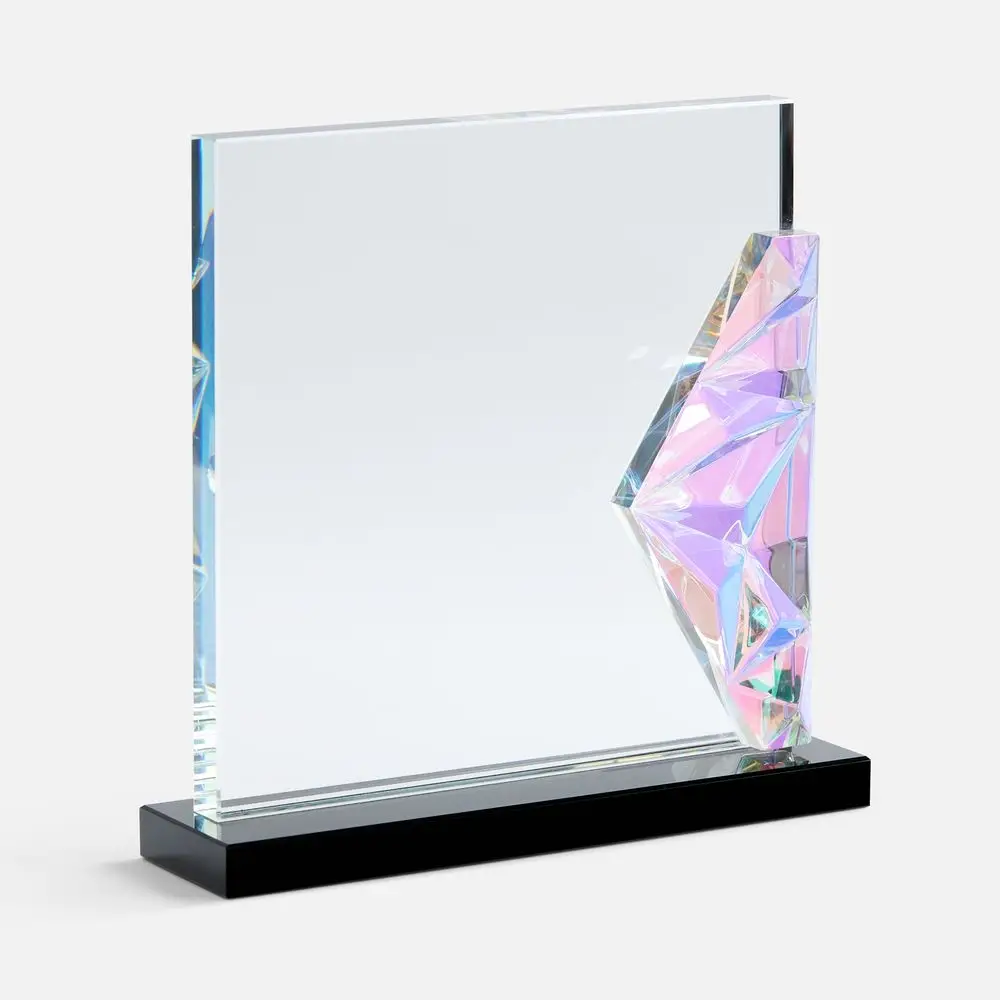 Evergleam — оригинальное исполнение традиционной стелы с эффектной цветной вставкой. Эта переливающаяся разными оттенками объемная деталь, словно какой-то фантастический кристалл, добавляет привычной награде магии и свежести, олицетворяя драгоценность признанного успеха и высокое мастерство самого получателя.
