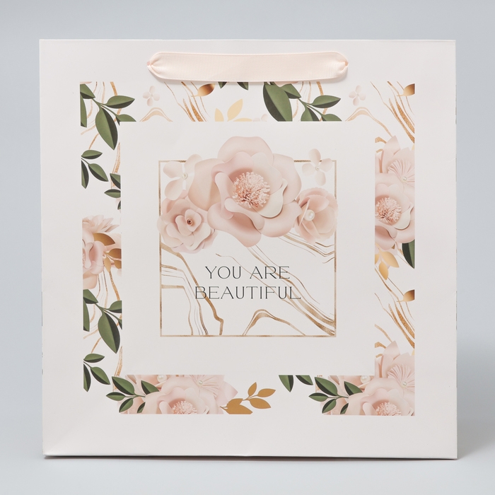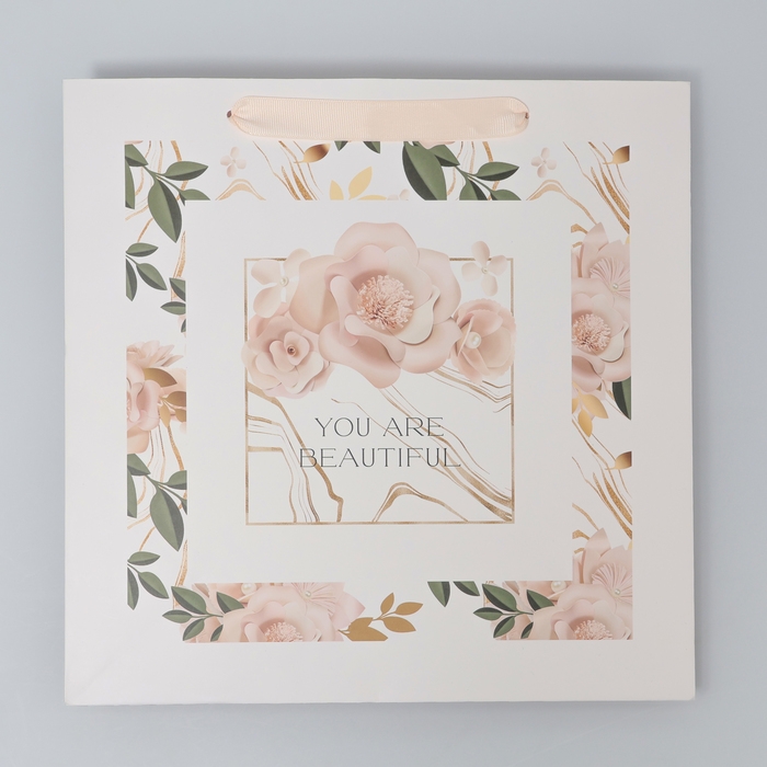 Пакет подарочный ламинированный квадратный, упаковка, «Beautiful», 30 х 30 х 12 см