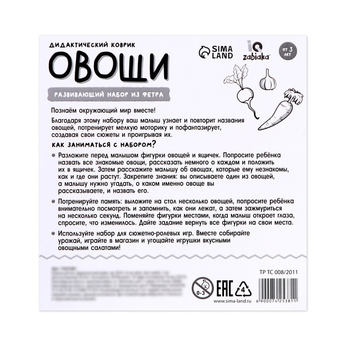 Развивающий набор из фетра «Овощи»
